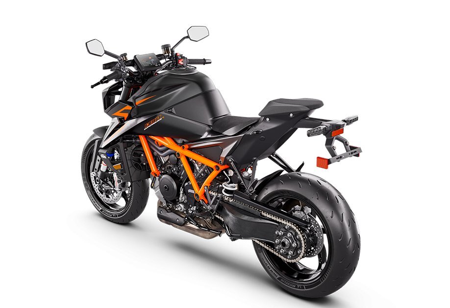 Configurable with up to 5 different ride modes, the KTM 1390 SUPER DUKE R EVO is ready for total domination, With STREET Mode set as the default, riders have full power, traction control, and limited front wheel lift, with an easy throttle response. In a step-up, SPORT Mode sharpens throttle response and allows for some wheel slip, while RAIN Mode does what it says on the box, providing maximum traction control and reduced power. The optional PERFORMANCE and TRACK Modes crank the KTM 1390 SUPER DUKE R EVO to an entirely new sphere, providing enhanced rider customization and unlimited superbike-scaring ability. |